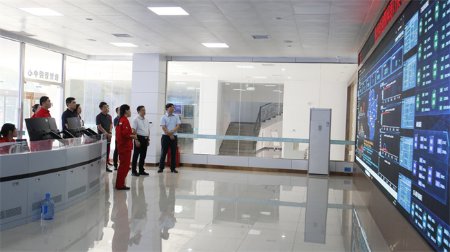 張浩一行先后參觀了智慧客服中心、數(shù)智管控中心、一樓文化長廊,客戶服務(wù)中心副經(jīng)理周玲玲詳細介紹了周口天然氣公司GIS系統(tǒng)、SCADA系統(tǒng)、呼叫系統(tǒng)等智慧燃氣建設(shè)成果,并結(jié)合日常工作場景演示了智慧燃氣如何在安全管控和營商環(huán)境提升中發(fā)揮的作用。