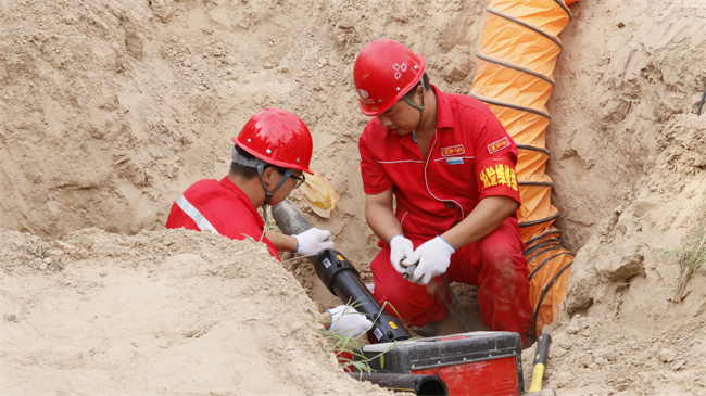演練模擬某施工單位在未告知巡線人員的情況下,擅自擴(kuò)大作業(yè)范圍,在規(guī)定區(qū)域外進(jìn)行開挖作業(yè),導(dǎo)致燃?xì)夤艿辣黄茐?,造成天然氣泄漏。周口市天然氣有限公司調(diào)度中心發(fā)現(xiàn)后迅速調(diào)度智能巡線車和巡檢無(wú)人機(jī)到達(dá)現(xiàn)場(chǎng)查看并啟動(dòng)應(yīng)急預(yù)案開展搶修,同時(shí)向主管部門進(jìn)行報(bào)備。演練現(xiàn)場(chǎng),各應(yīng)急搶險(xiǎn)職能小組迅速開展局部臨時(shí)交通管制,并向市民發(fā)布緊急停氣通知及安全提醒。最終,在消防部門的全力協(xié)助下,搶險(xiǎn)維修組成功進(jìn)入維修作業(yè)區(qū)域修復(fù)被破壞的管道。