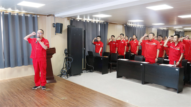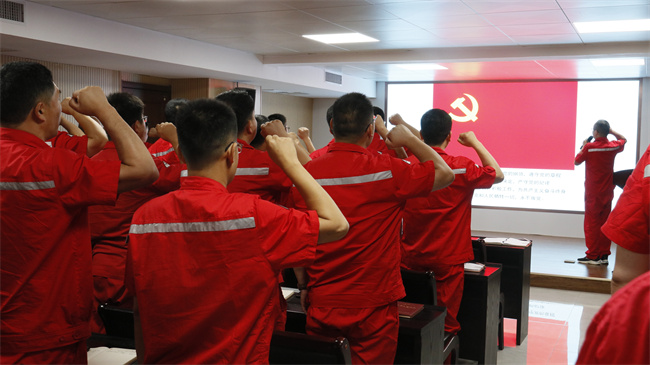 黨委委員陳柯帶領(lǐng)與會黨員重溫入黨誓詞。