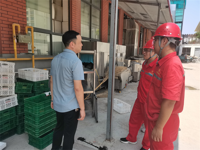 他要求,一是要做到認(rèn)真細(xì)致,安全檢查過程中要對后廚用氣情況、燃?xì)獗韴缶鬟\(yùn)行狀態(tài)、安全檢查記錄表等全面檢查到位;二是要對發(fā)現(xiàn)的安全隱患現(xiàn)場進(jìn)行整改處理,做好相關(guān)臺賬記錄,及時有效防范化解校園燃?xì)獍踩L(fēng)險;三是要在安檢后組織后廚工作人員開展相關(guān)安全培訓(xùn),培訓(xùn)內(nèi)容要貼合實(shí)際,確保安全用氣相關(guān)知識入腦入心。