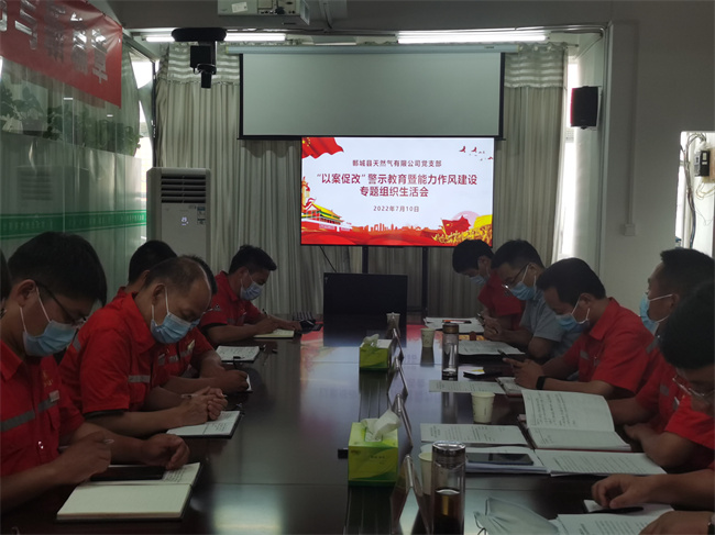 鄲城天然氣公司黨支部召開“以案促改”警示教育暨能力作風建設專題組織生活會