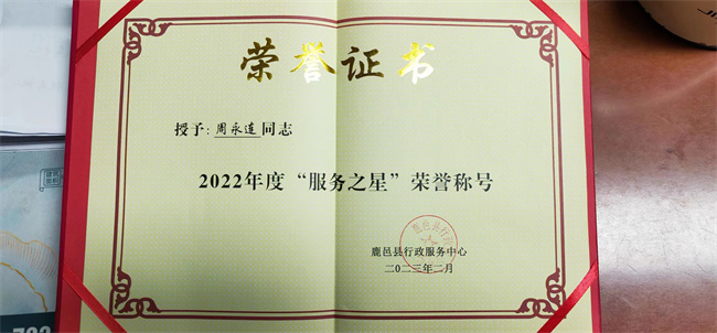 2023年2月24日,鹿邑縣行政服務中心召開了2022年總結(jié)表彰會,對2022年度政務服務系統(tǒng)先進單位和優(yōu)秀個人的進行通報表彰。水電氣暖駐行政服務中心綜合窗口被評為服務營商環(huán)境先進窗口,鹿邑天然氣公司駐縣行政服務中心窗口工作人員周永蓮榮獲“服務之星”榮譽稱號。這是周永蓮同志在行政服務中心工作以來第二次獲此殊榮。