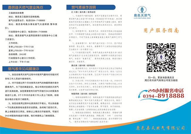 鹿邑縣天然氣有限公司用戶服務(wù)指南