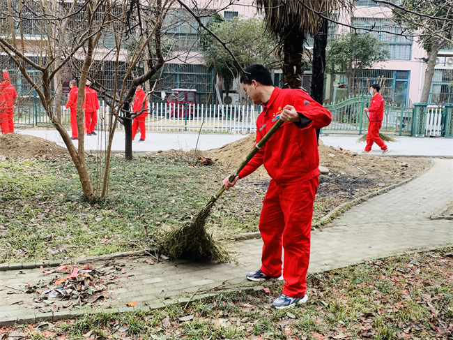在活動(dòng)現(xiàn)場,機(jī)關(guān)黨支部副書記王繼鋒與黨員志愿者們一起開展衛(wèi)生清潔活動(dòng),對(duì)小區(qū)內(nèi)樹木落葉、衛(wèi)生死角進(jìn)行了全面的清理。